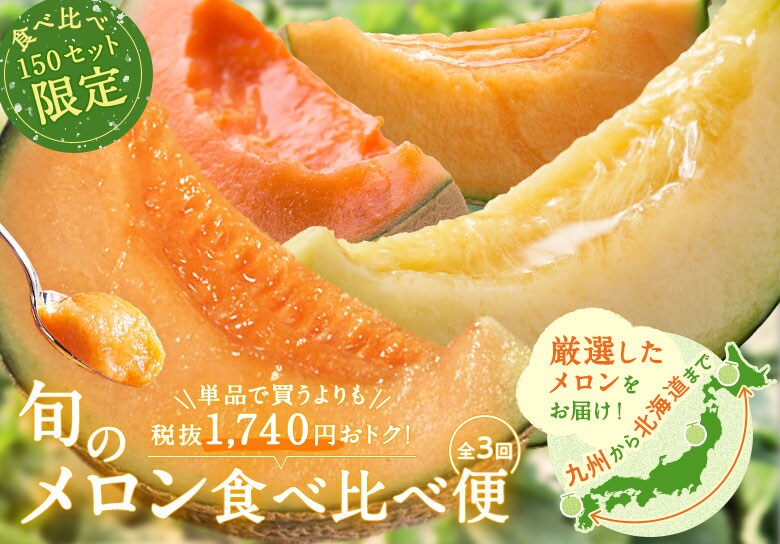 一番おいしい旬のメロンが全国から産地直送で毎月お届け!メロン好きにはたまりません!毎回届くのが待ち遠しくなること間違いなし。ジューシーで果汁たっぷりのメロン食べ比べをお楽しみください♪