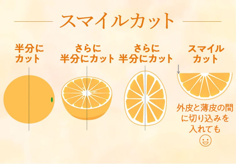 みかんのように手で剥けますが、ナイフでスマイルカットをしていただくのがおすすめです。