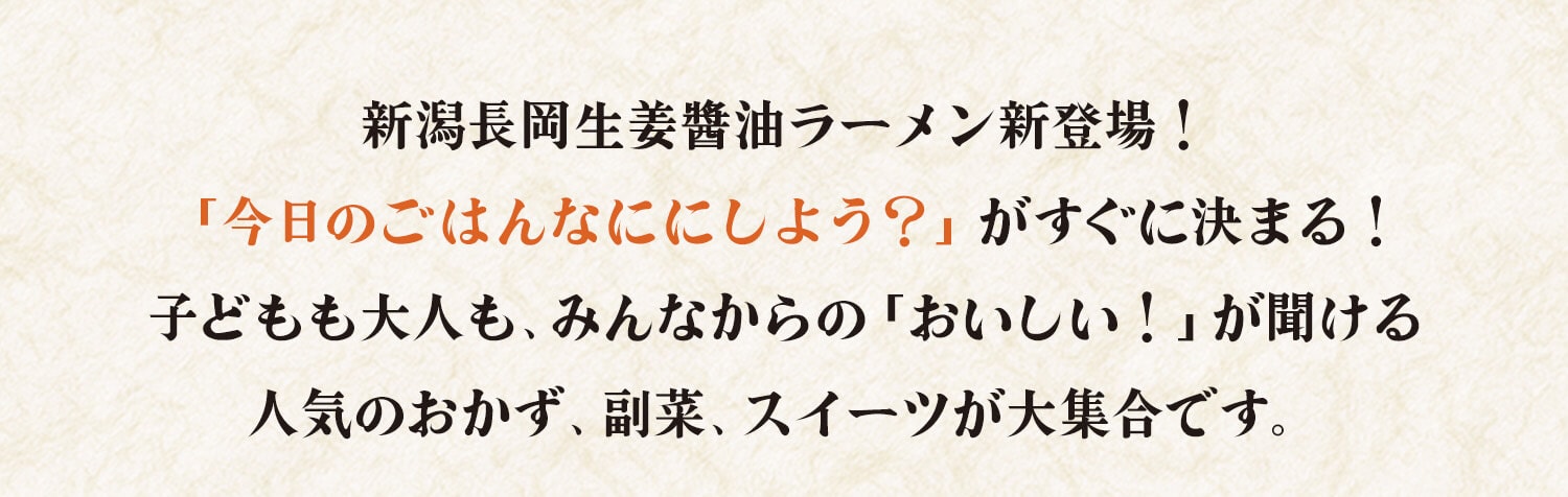 新潟長岡で愛される味わいを再現しました!濃口醤油の深いコクに、生姜がほんのりと香る上品な仕上がりです。刺激を抑えた優しいアクセントが、スープの旨みを一層引き立てます。いつもとはちょっと違う、毎日でも食べたくなる飽きのこない一杯をお楽しみください。