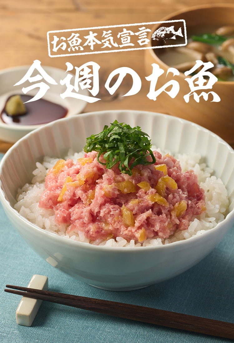 袋のまま流水で3-5分解凍するだけ。獲後直ちに処理し急速凍結した、鮮度の良い鮪を使用しています。ねぎとろの割合を多くし、国産大根を使用したたくあんを合わせることで、鮪とたくあん本来の食感と旨みを楽しめるよう仕上げました。食べきりサイズで、どんぶりや手巻き寿司にぴったりです♪