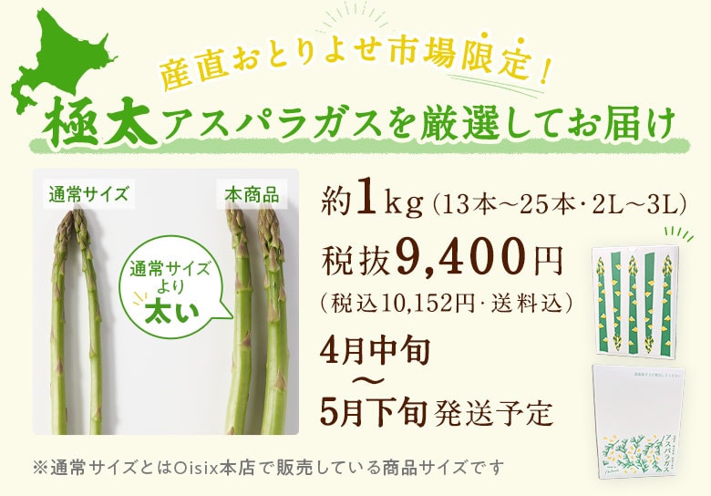 産直おとりよせ市場の「極太アスパラガス」は、厳選された極太サイズをお届け!