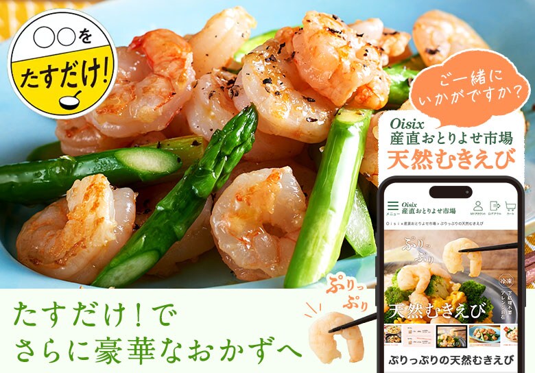 食べ応え抜群の極太アスパラと、解凍するだけで使えるエビで、彩り豊かなお弁当おかずを。
