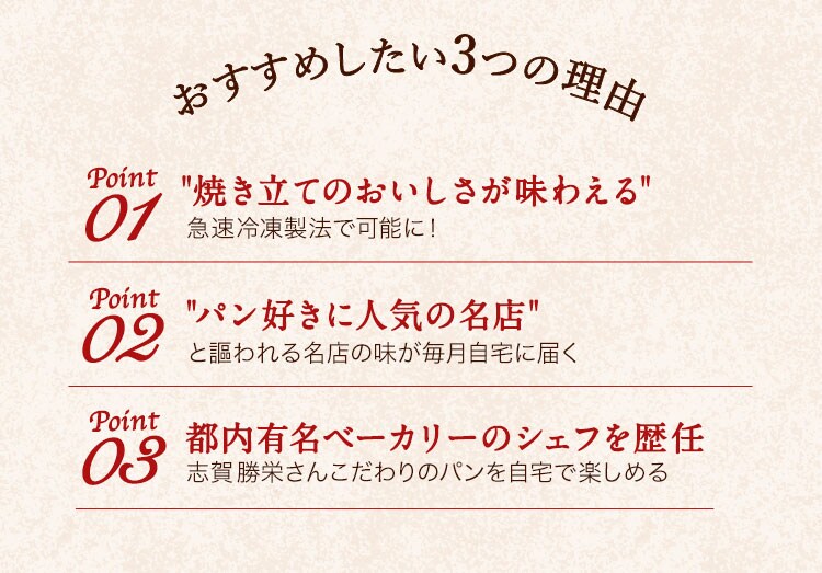 - 冷凍でも裏切らない美味しさでした。パンの種類も多く、食事がリッチになりました。家族中、毎回楽しみでした。