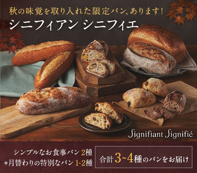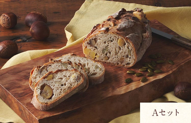 低温長時間発酵により、小麦の風味やうまみの引き出された生地に、秋の素材の栗とかぼちゃの種を入れて焼きあげます。ほっくりとした栗の甘みと、カボチャの種の食感が重なる、素朴で奥行きのある味わいです。