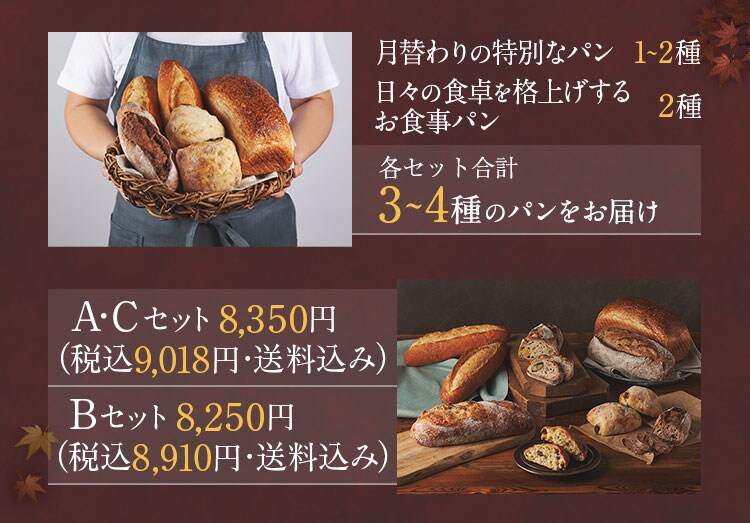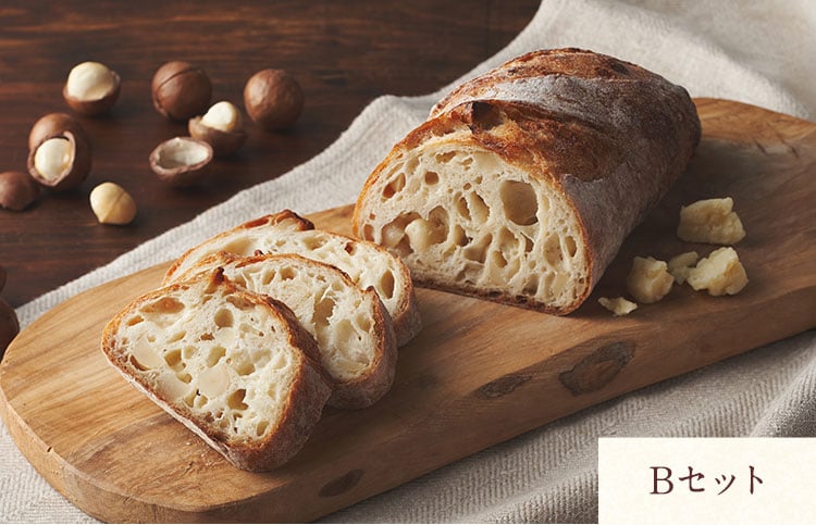 ■セット内容 : パン・ド・ミ 1個(約320g)、バゲット 2個、チーズ&マカダミアナッツ 1個