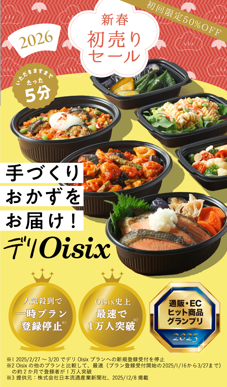【特典対象者】Oisixをはじめてご利用される方で、キャンペーン期間内にこのページ経由で「おいしっくすくらぶ」にご登録された方。