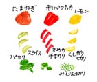 たまねぎはスライス、赤パプリカは太めの千切り、レモンはくし形、パセリは葉をちぎり、みじん切りにします。