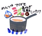 鍋にあらかじめ作っておいためんつゆを入れて温め、アイガモ、長ねぎ、生麩、しいたけを加えて火を通します。